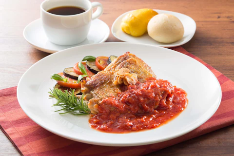 ジューシーでプリっとした歯ごたえと旨味を持つ、バランスに優れた肉質が特徴の大山どりを使用しています。 チキンのグリルや、チキン南蛮、オリジナルチキンカレーなどをご用意しております。