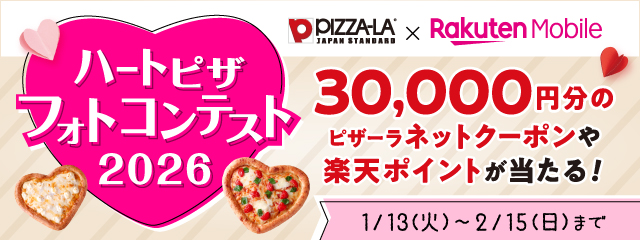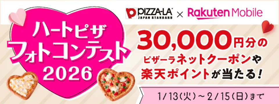 宅配ピザ「PIZZA-LA」は、「ハートで伝える“ありがとう”」をテーマに、楽天モバイル株式会社(本社:東京都世田谷区、代表取締役社長:矢澤俊介)と共同で、Instagramフォトコンテスト『ハートピザ フォトコンテスト2026』を実施いたします。