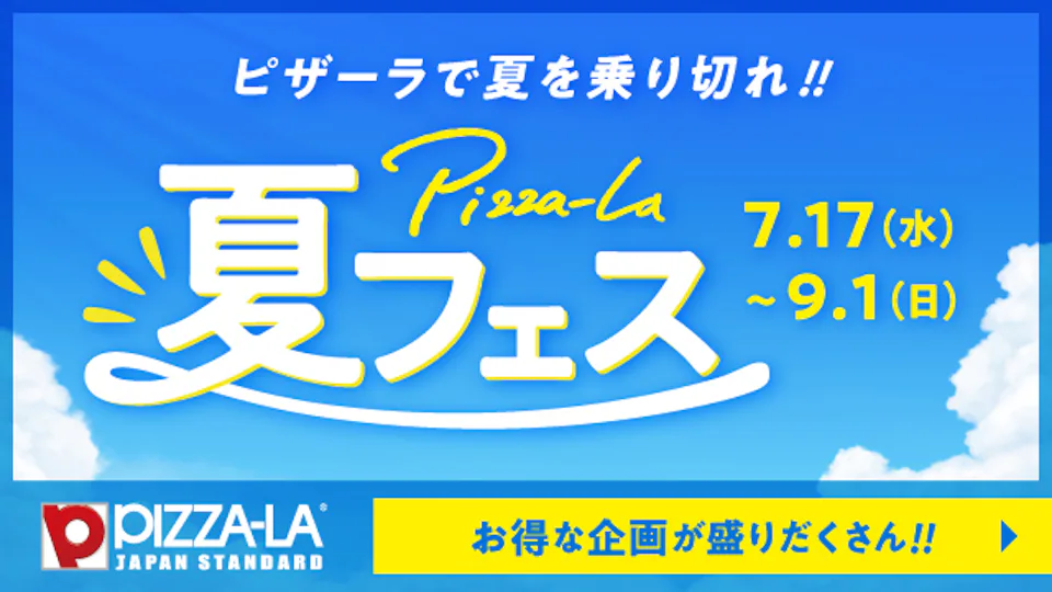 宅配ピザ「PIZZA-LA」は、日ごろのご愛顧に感謝し、『ピザーラ夏フェス』を7月17日(水)から実施します。第一弾として、2倍盛りキャンペーンや夏の新商品「とろ~りチーズ」をお得にお試しいただける特別価格での販売などをスタートいたします。