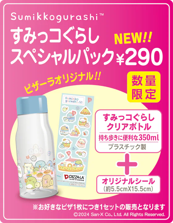 ピザーラオリジナルの「すみっコぐらし」クリアボトルがGETできる! 数量限定『すみっコぐらしスペシャルパック』新発売!!