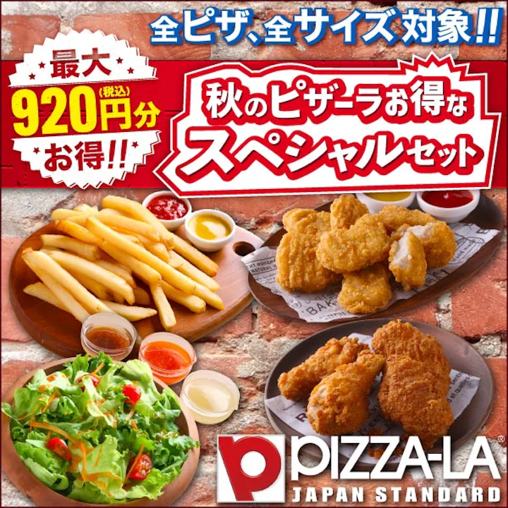 宅配ピザ「PIZZA-LA」は、サイドメニューが最大920円(税込)もお得になる『お得なスペシャルセット』を、2023年9月6日(水)から期間限定で販売いたします。