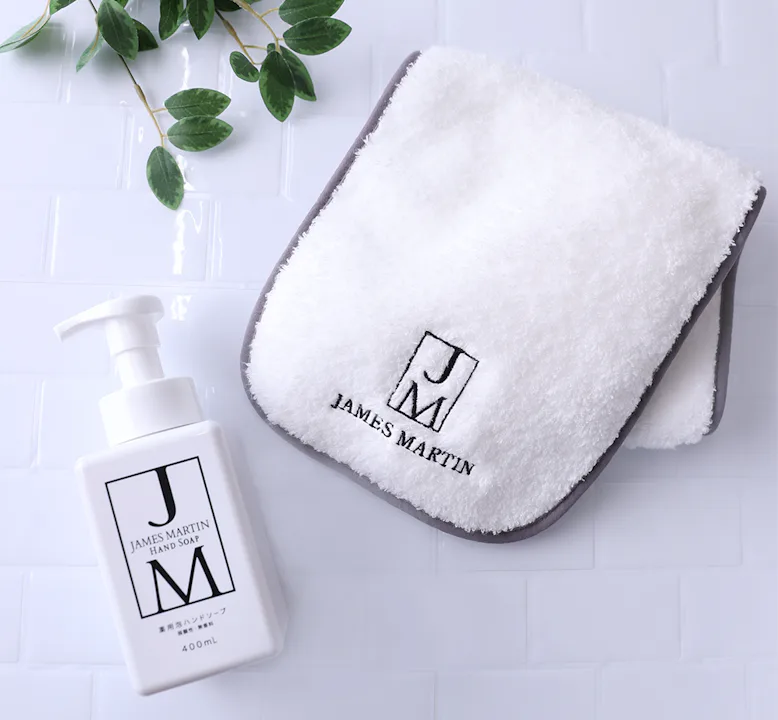 内野株式会社 (本社 東京都中央区 代表取締役社長 内野孝信) と共同で吸水性と柔らかさ、抗菌・防臭に優れたタオルを開発し、除菌・消臭用アルコール製剤をはじめとするライフスタイルブランド 『 ジェームズマーティン 』 の薬用泡ハンドソープとセットにした新しいギフトセット「ハンドソープ タオルギフトセット」を 2025 年 4 月 18 日 (金) 正午より発売いたします。
