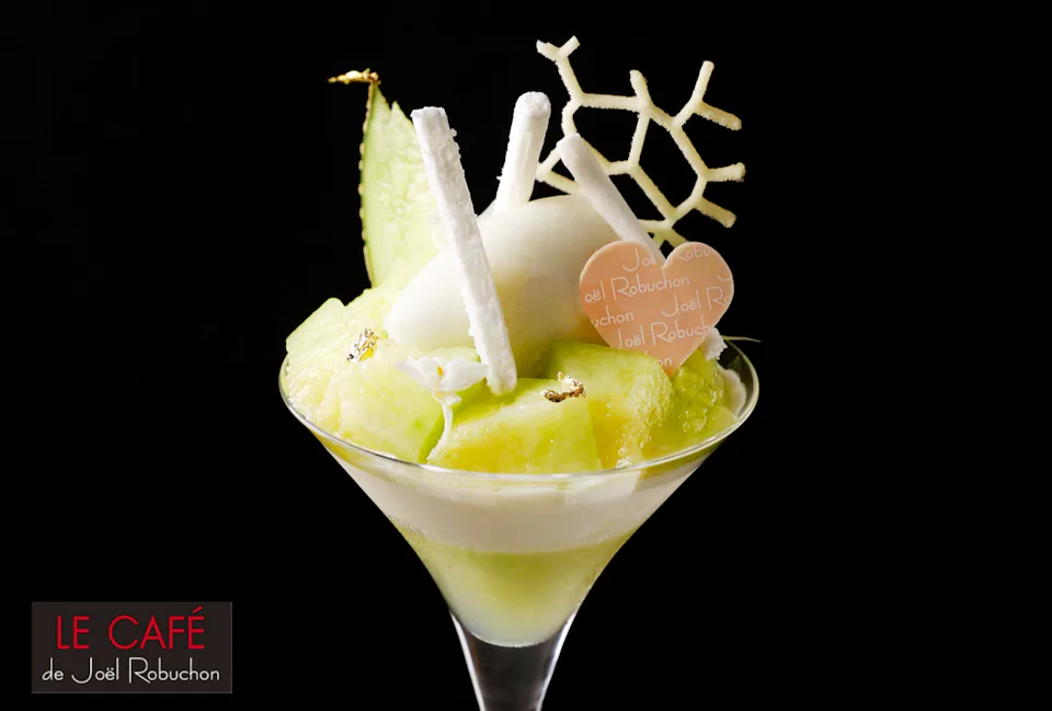 【1日20食限定】 ル カフェ ドゥ ジョエル・ロブション初夏の新作 美味しさだけを追求した完熟とろける甘さの『静岡県産 天使音(あまね)マスクメロンのパフェ』
