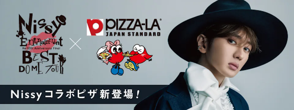 宅配ピザ「PIZZA-LA」は、12月12日(木)から期間限定で、アーティストの「Nissy(西島隆弘)」とのコラボによる新商品『Time To PIZZA Party』を、限定デザイン「缶バッジ」と「ピザスリーブ」付きで販売いたします。