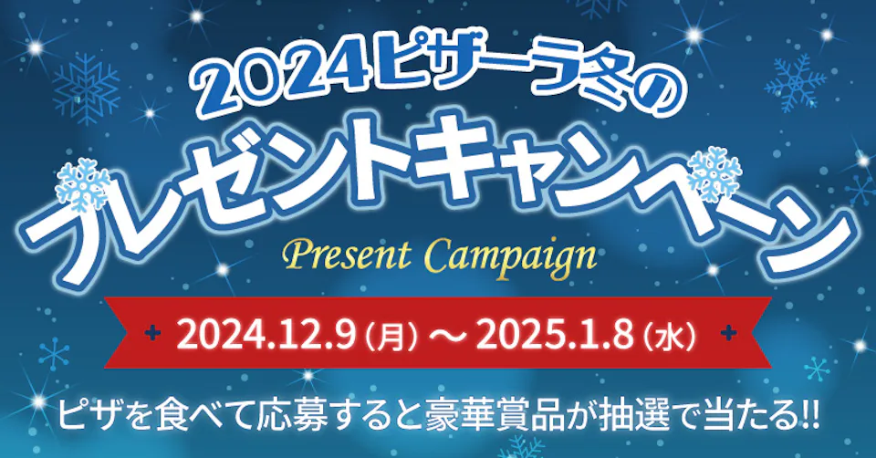 宅配ピザ「PIZZA-LA」は2024年12月9日(月)から2025年1月8日(水)の期間、『2024ピザーラ冬のプレゼントキャンペーン』を実施いたします。
