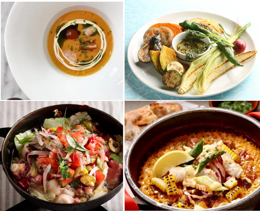 BIKiNi(ビキニ)の夏限定メニュースペインの夏を一皿に! ひんやりガスパチョ・夏野菜のプランチャ・タコのアヒージョにパエリアも