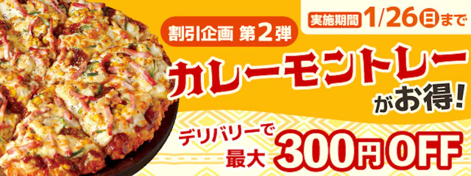 宅配ピザ「PIZZA-LA」は、1月22日にむかえる「カレーの日」の特別企画として、大人気ピザ『カレーモントレー』がデリバリーで最大300円割引になるキャンペーンをピザーラ公式サイトで1月21日から期間限定で実施いたします。