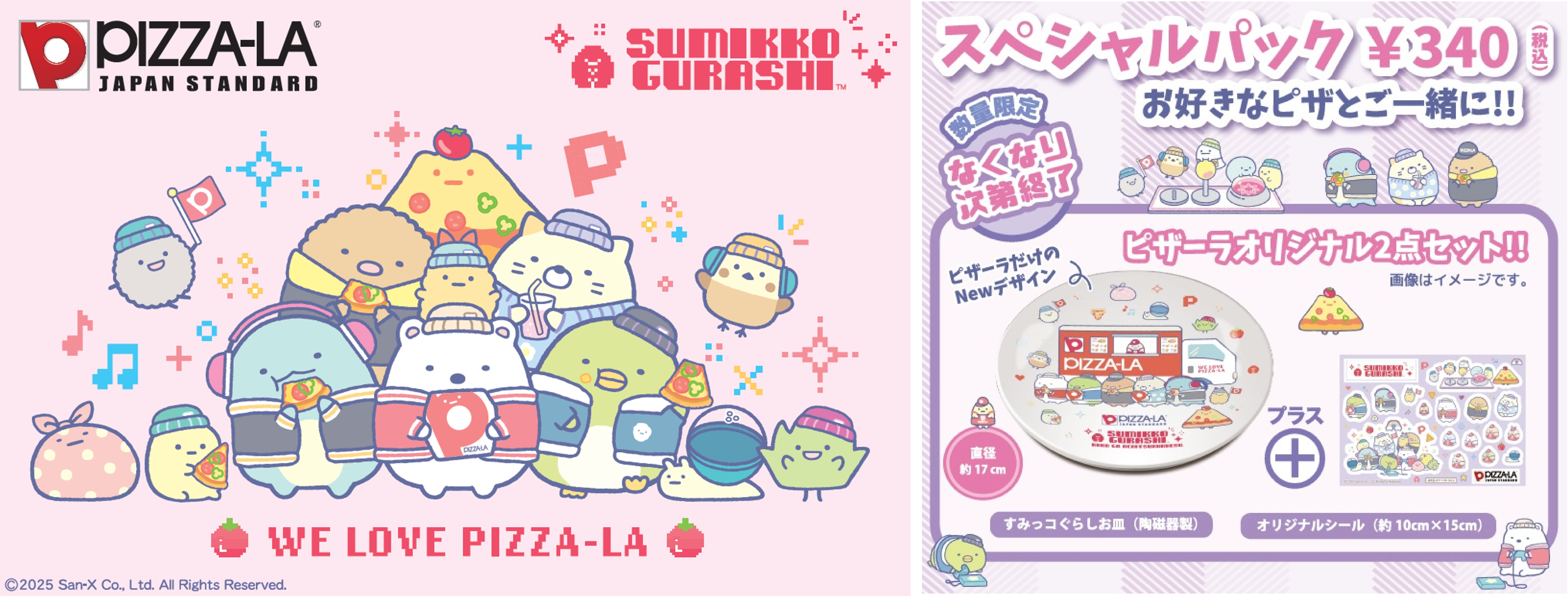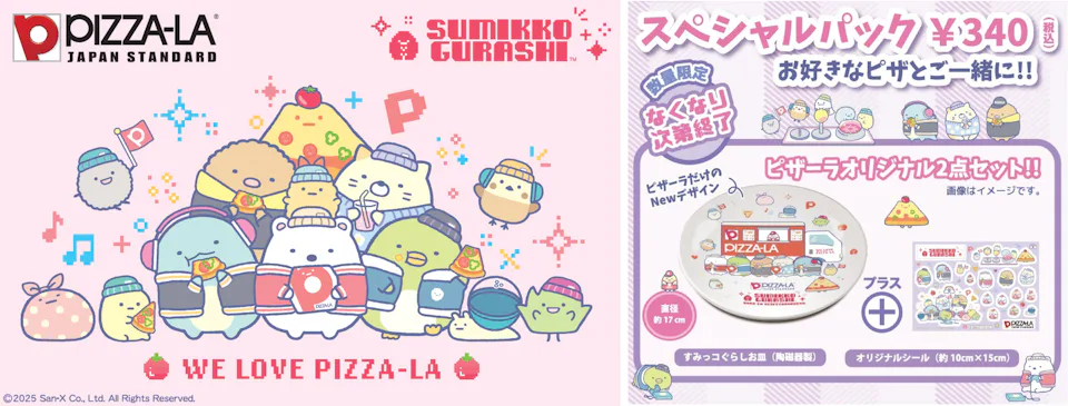 宅配ピザ「PIZZA-LA」は、2025年11月5日(水)から、人気キャラクター「すみっコぐらし」のオリジナルグッズが購入できる『すみっコぐらしスペシャルパック』を、全国のピザーラで数量限定販売いたします。