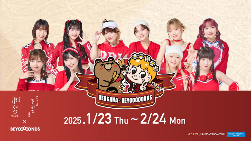 串かつ居酒屋『串かつ でんがな』とネオ居酒屋『串かつとお酒 でんがな』では、2025年1月23日よりハロー!プロジェクト『BEYOOOOONDS(ビヨーンズ)』の新曲リリースを記念したコラボレーションを開始いたします。