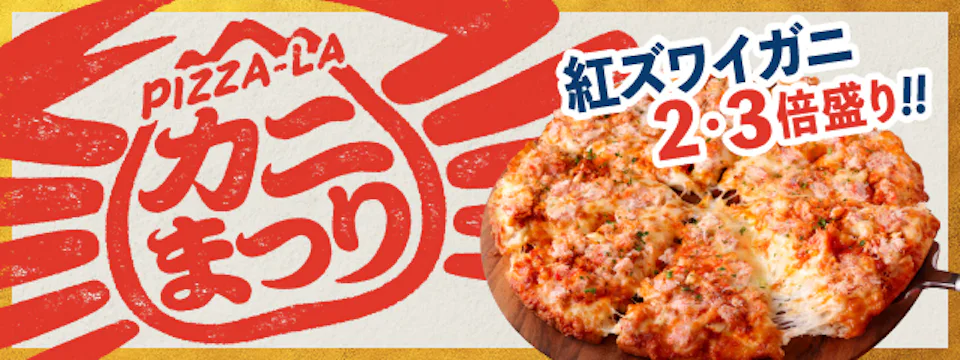 宅配ピザ「PIZZA-LA」は、「ピザーラ カニまつり」として、ピザーラ公式サイト限定で、冬の新作「濃厚カニリッチ」の紅ズワイガニを2倍盛り・3倍盛りにした特別商品の販売を実施いたします。