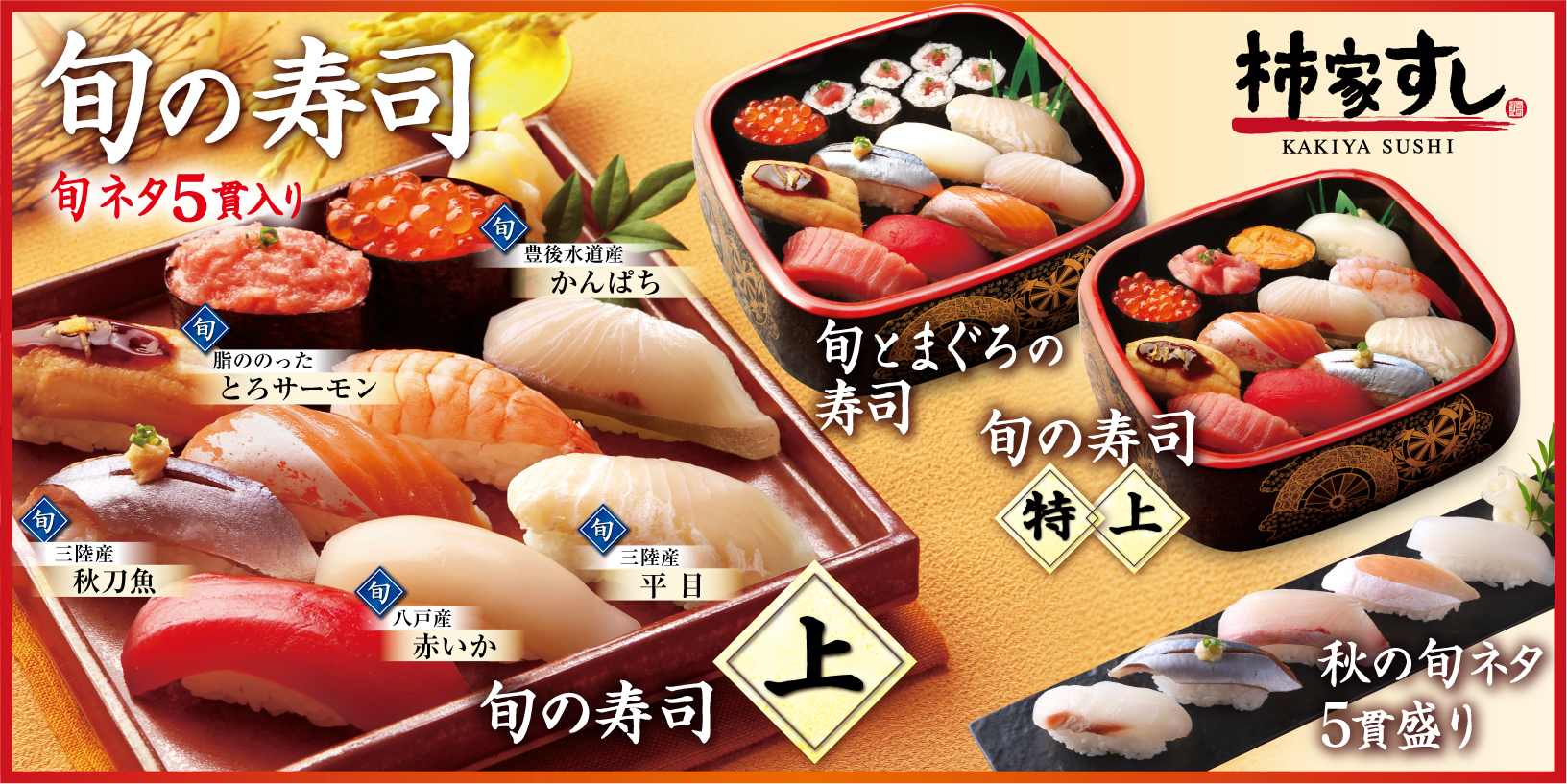 2023.09.04柿家すし旬の味「秋刀魚」や三陸産「平目」など いち早く秋味を堪能!柿家すし『旬の寿司秋』新発売期間限定:2023年9月4日(月)~11月5日(日)出前寿司「柿家すし」では、2023年9月4日(月)から、秋の旬ネタを盛り込んだ『旬の寿司秋』の販売を開始いたします。資料をダウンロード